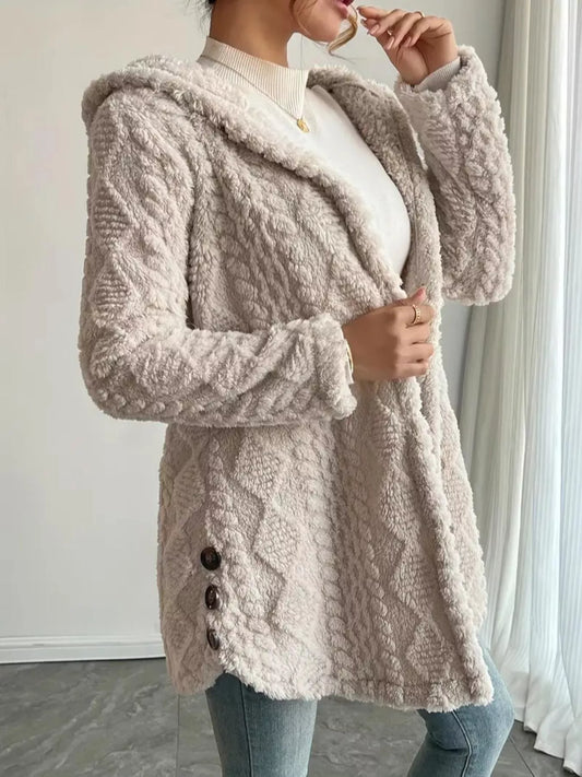 Cozy Textured Button-Front Hooded Outerwear