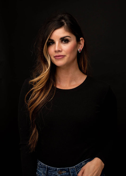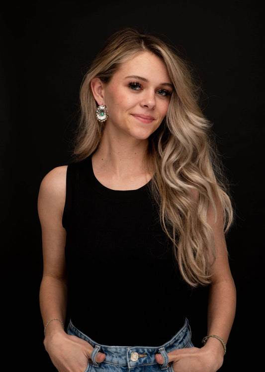 Burnished Silver Studded Concho Earring w/ Turquoise Accent