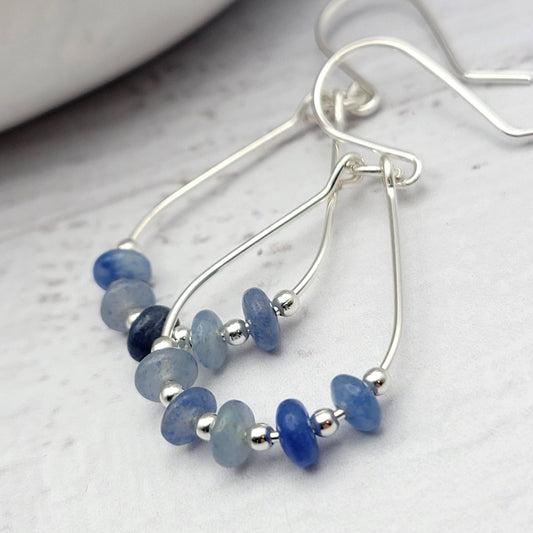 Blue Aventurine and Silver Teardrop Hoop Earrings