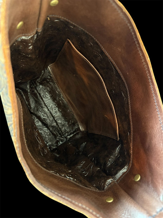 Twisted R Ranch - Western Floral and Vintage Brown Bucket Bag #4007