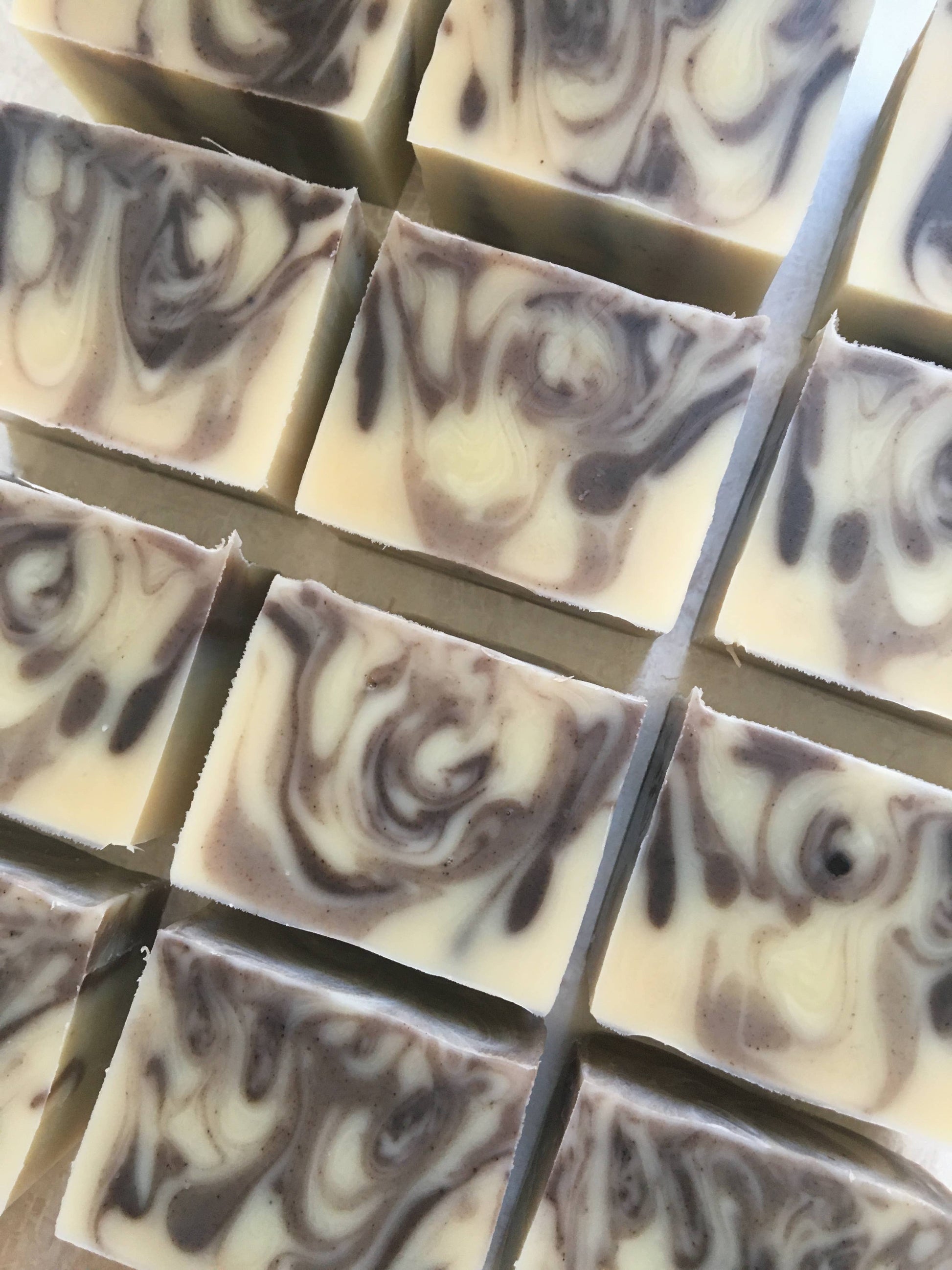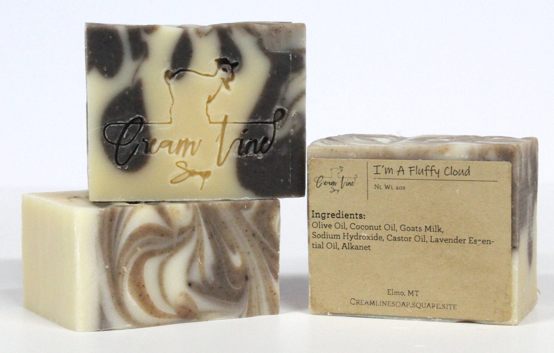 Fluffy cloud Goats Milk Soap. Made in small batches with pure goat's milk from makers family herd. Gently scented with all-natural fragrances and only the best ingredients for sensitive skin.