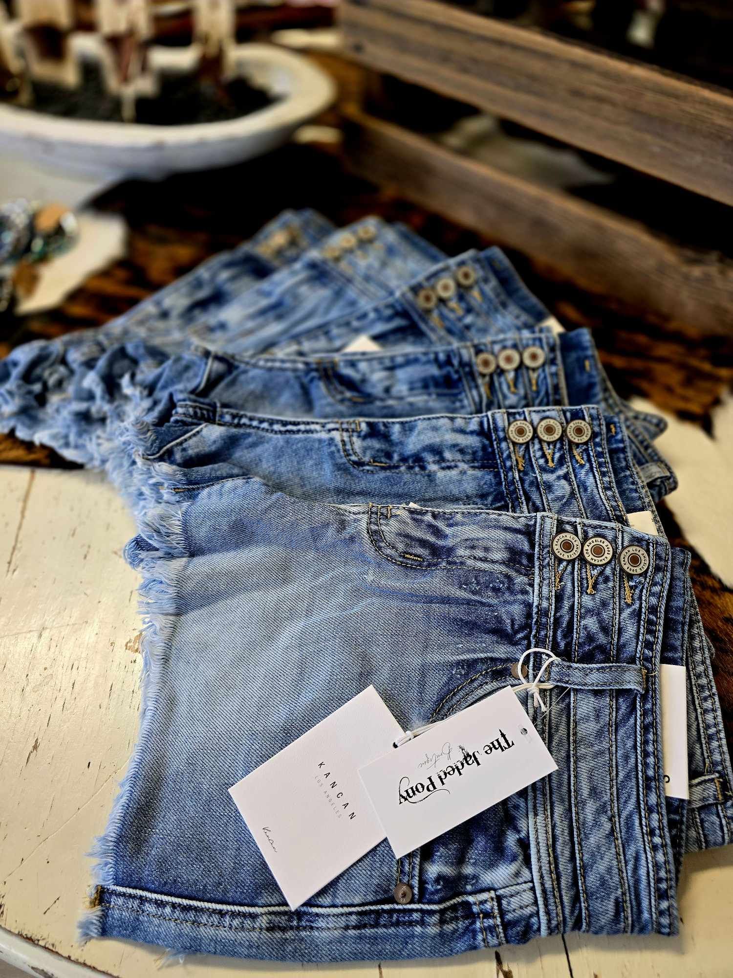 Get ready for summer with Kancan's High Rise Triple Button Waistband Frayed Hem Shorts! Made of 100% cotton, these medium stone wash shorts feature a non-distressed, high rise fit and a playful frayed hem. Triple button waistband and zip fly add extra detail. Perfect for any casual occasion.