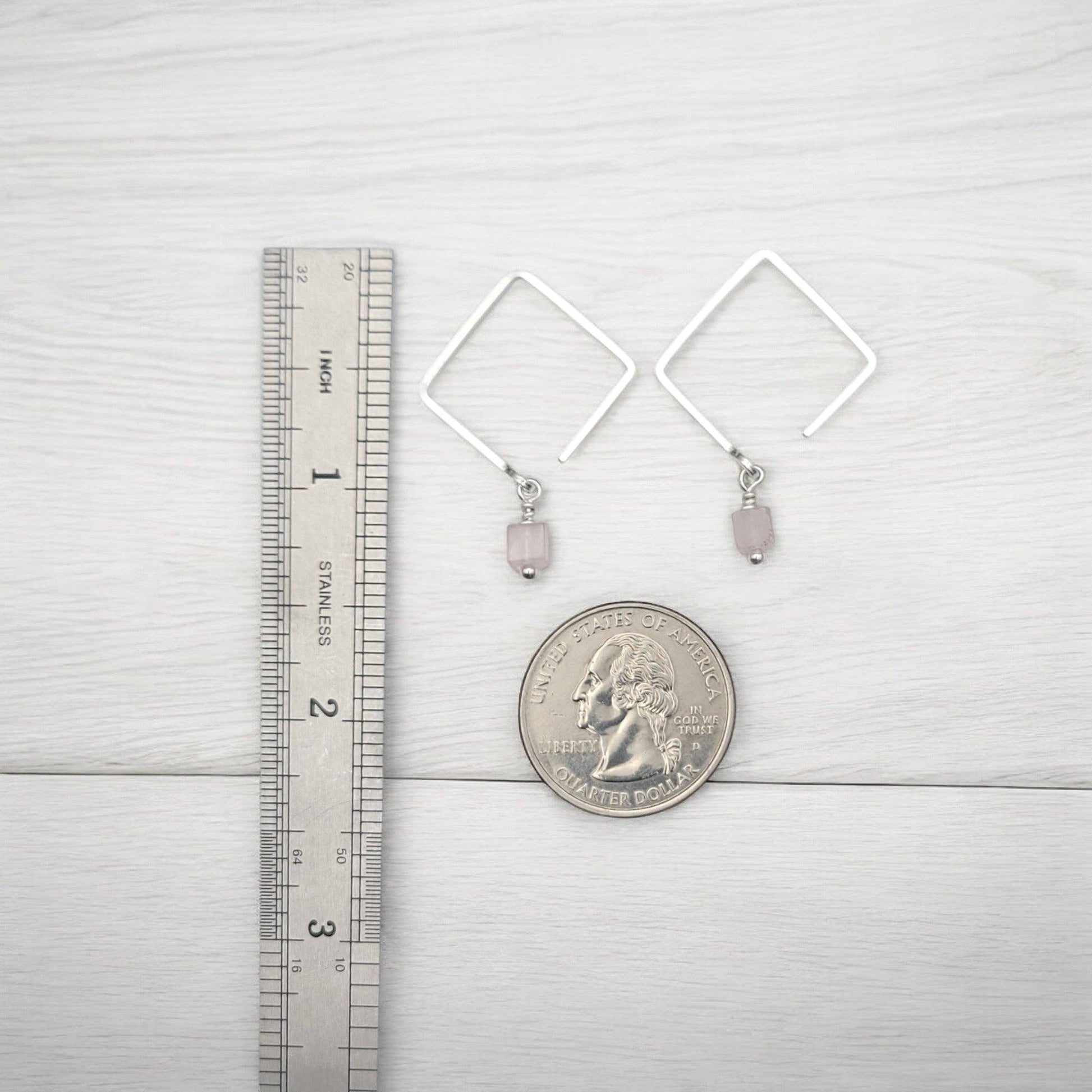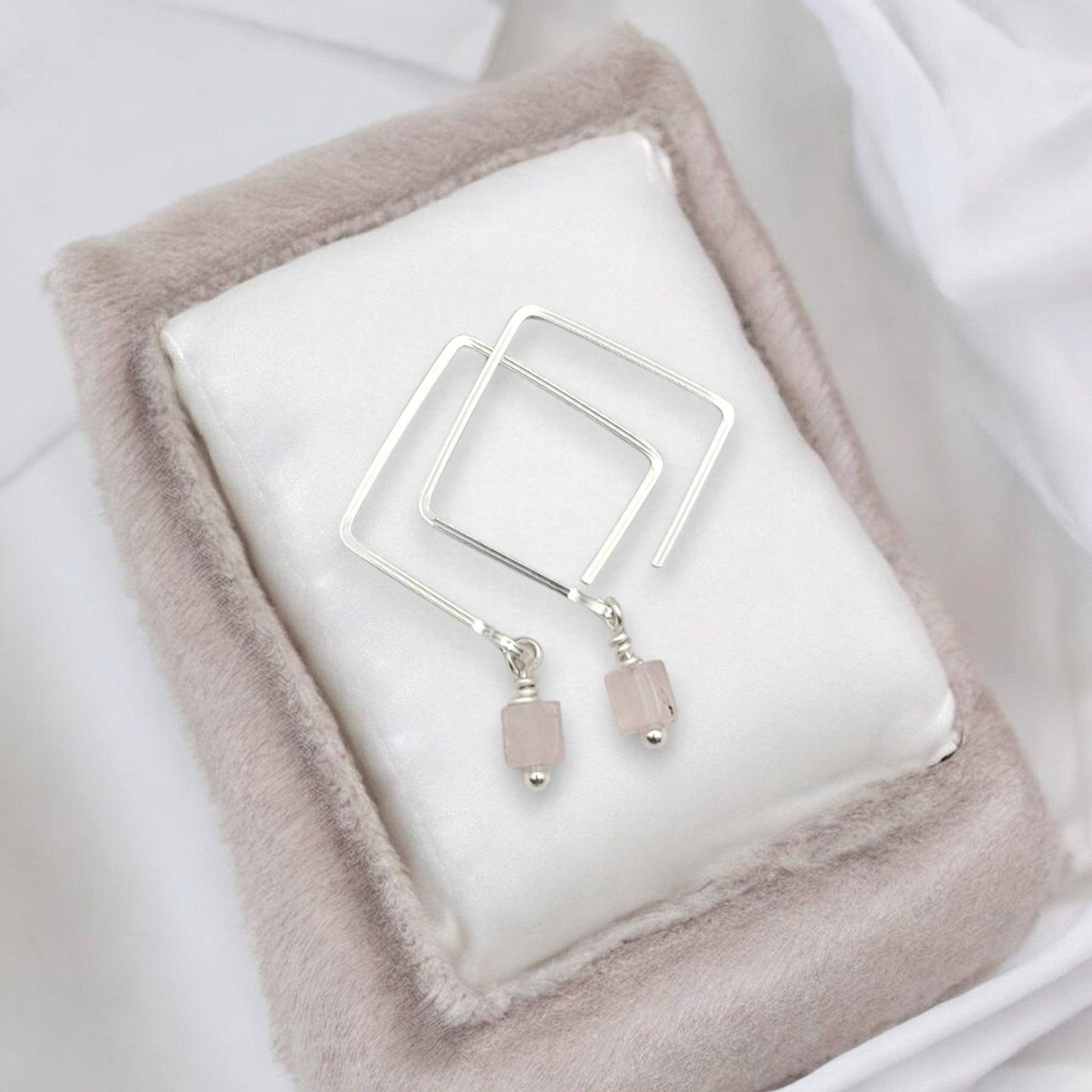 Modern Geometric Square Threader Earrings with Rose Quartz