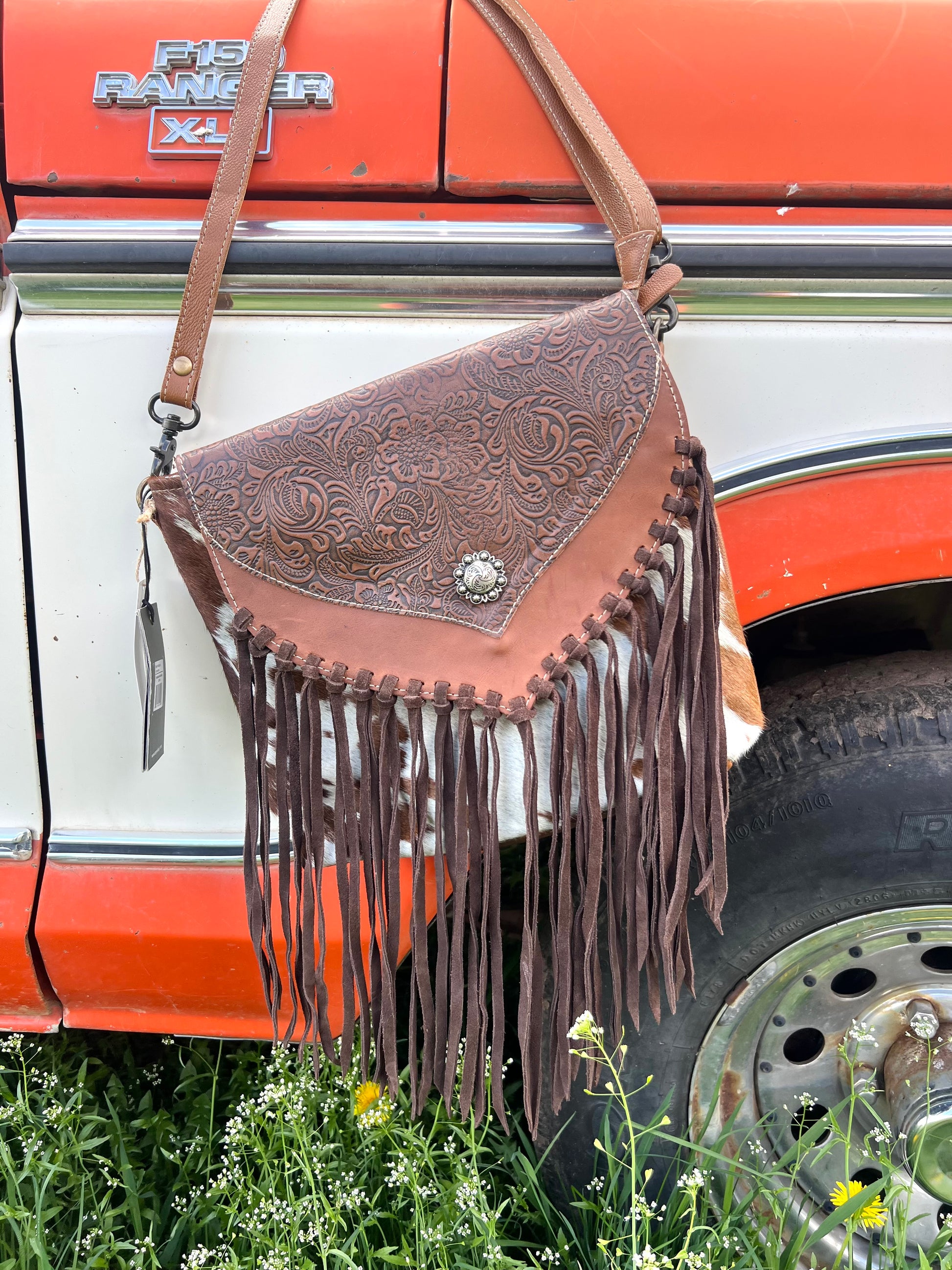 Myra Saddlebag Leather, Hair on Hide & Canvas Purse