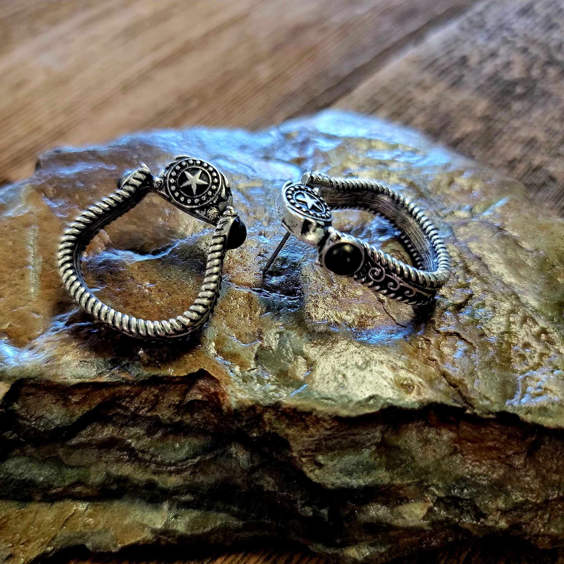 Silverstone Stirrup Earring - Choose between black or turquoise stone (1 inch)