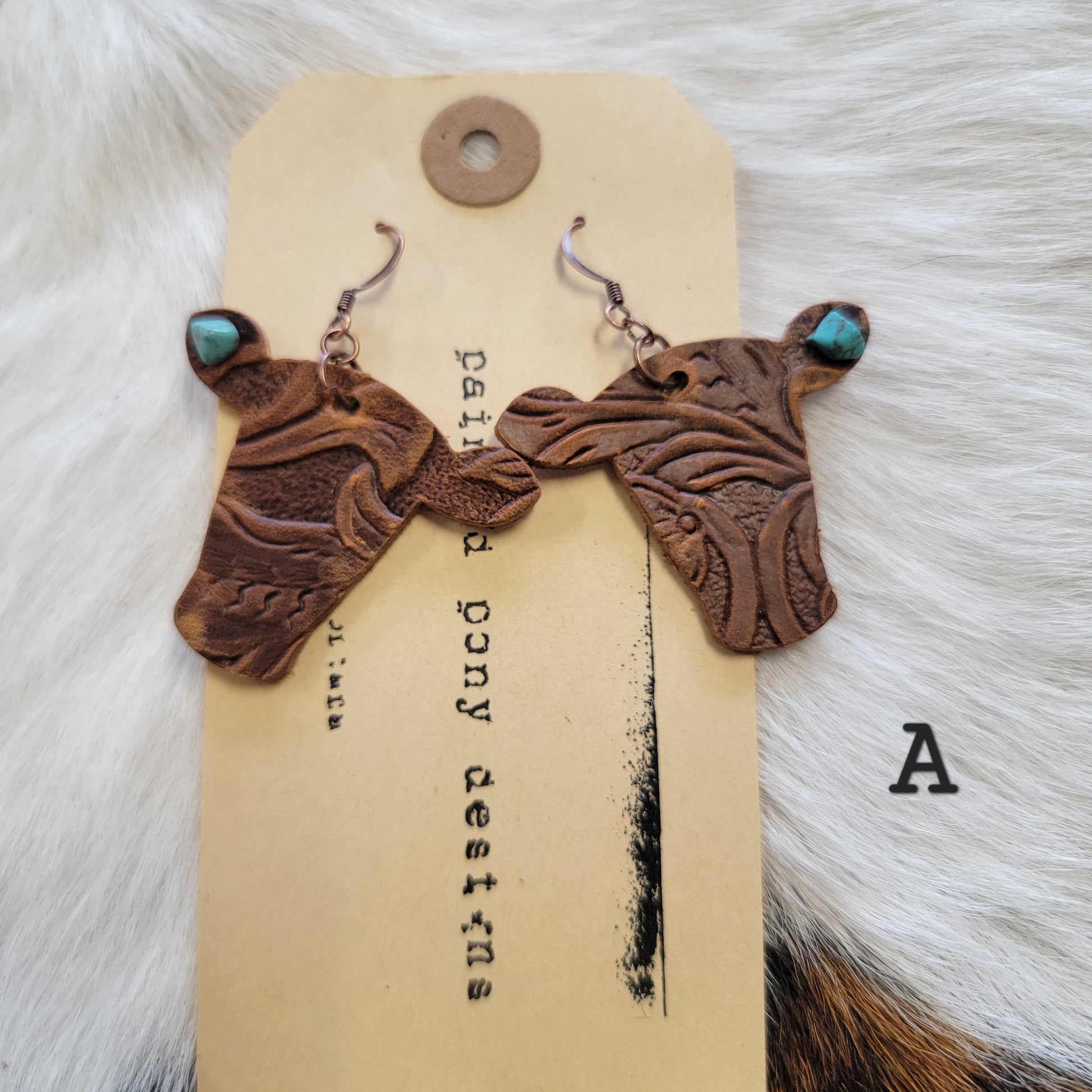 Earrings are made with real leather and Kingman Turquoise when turquoise is present.