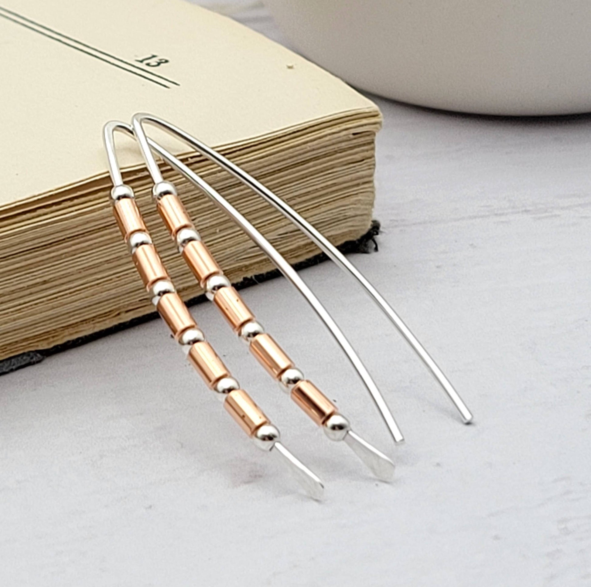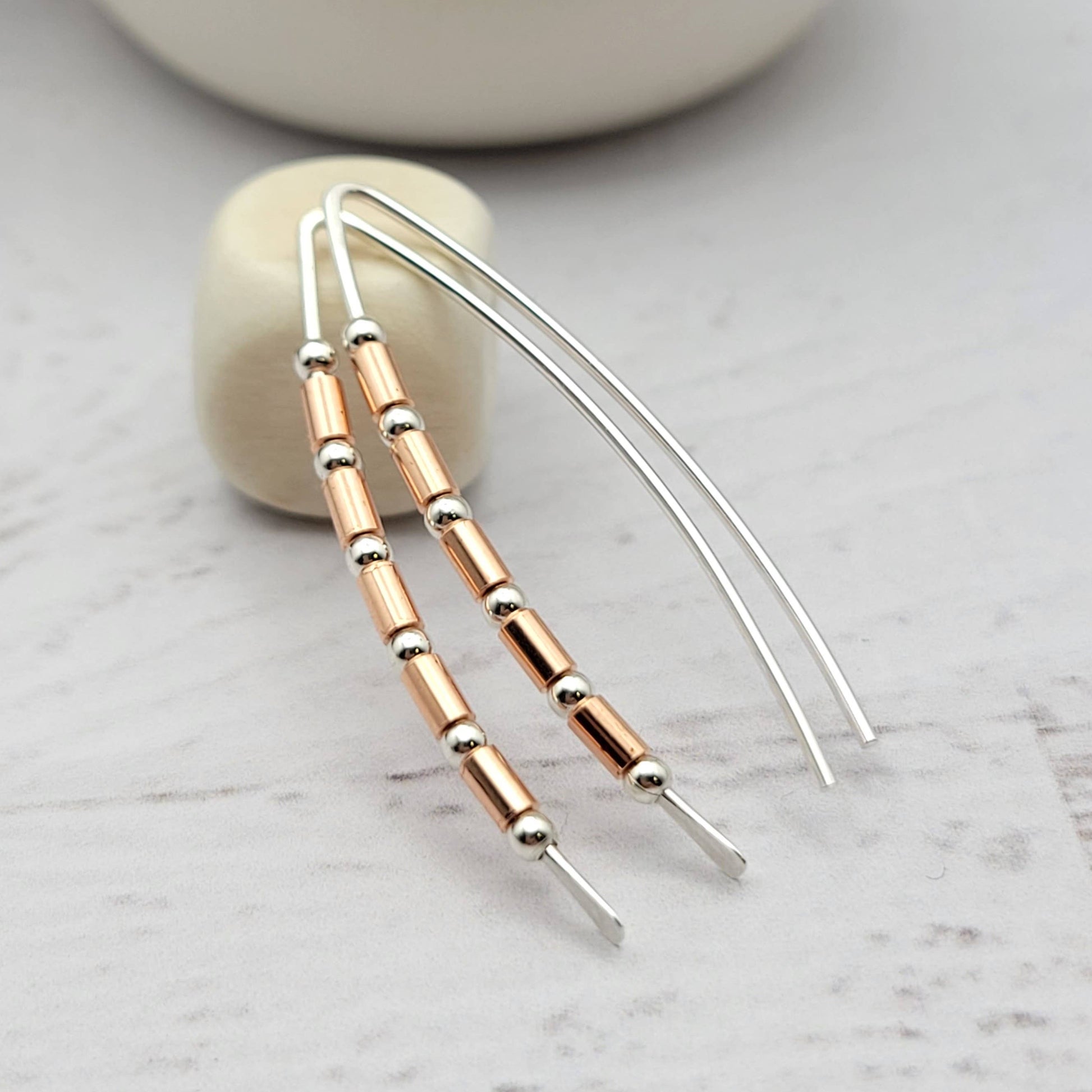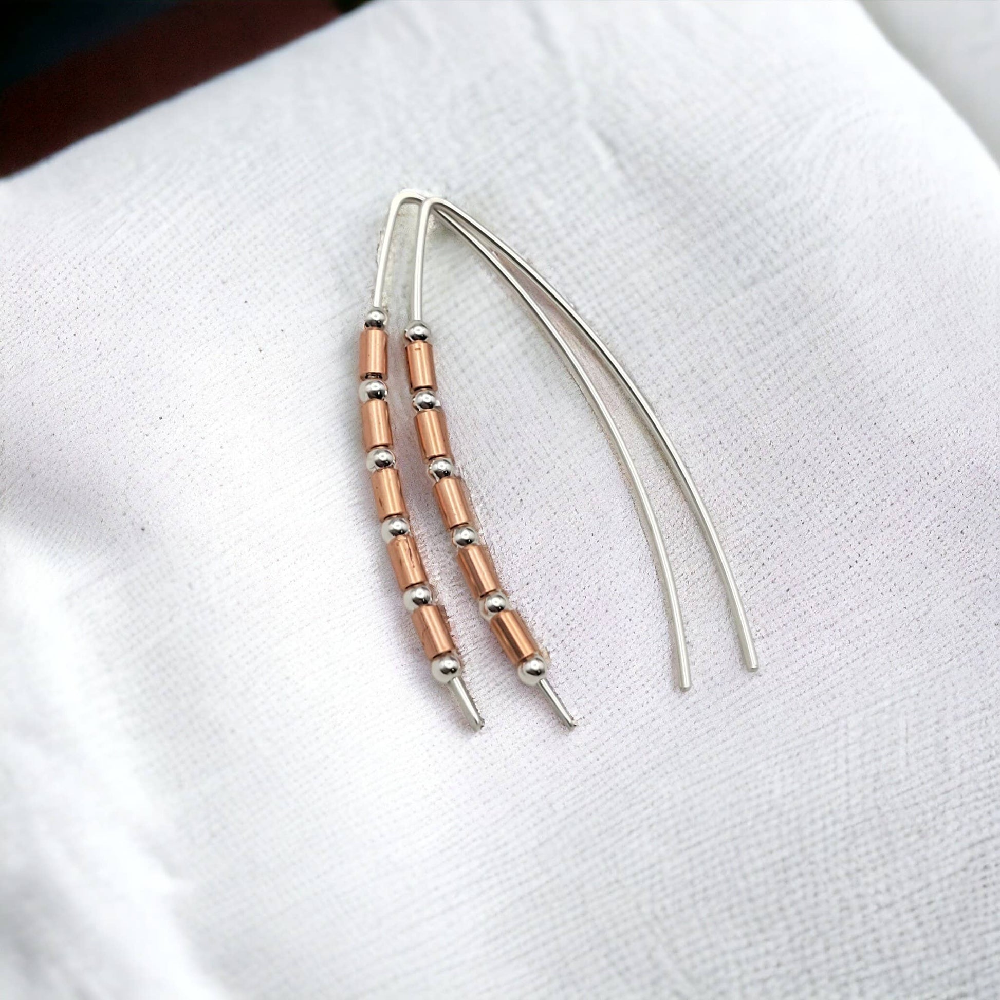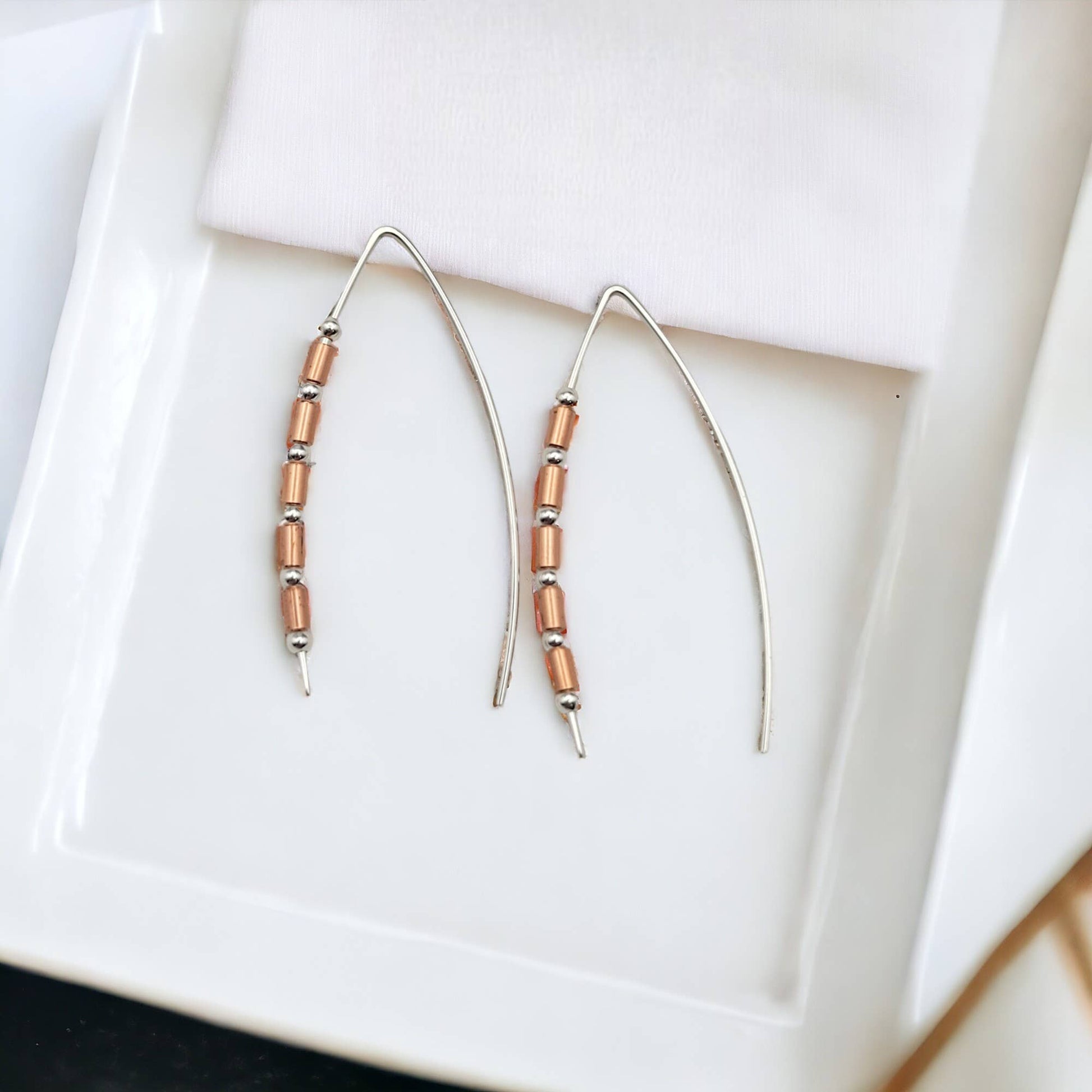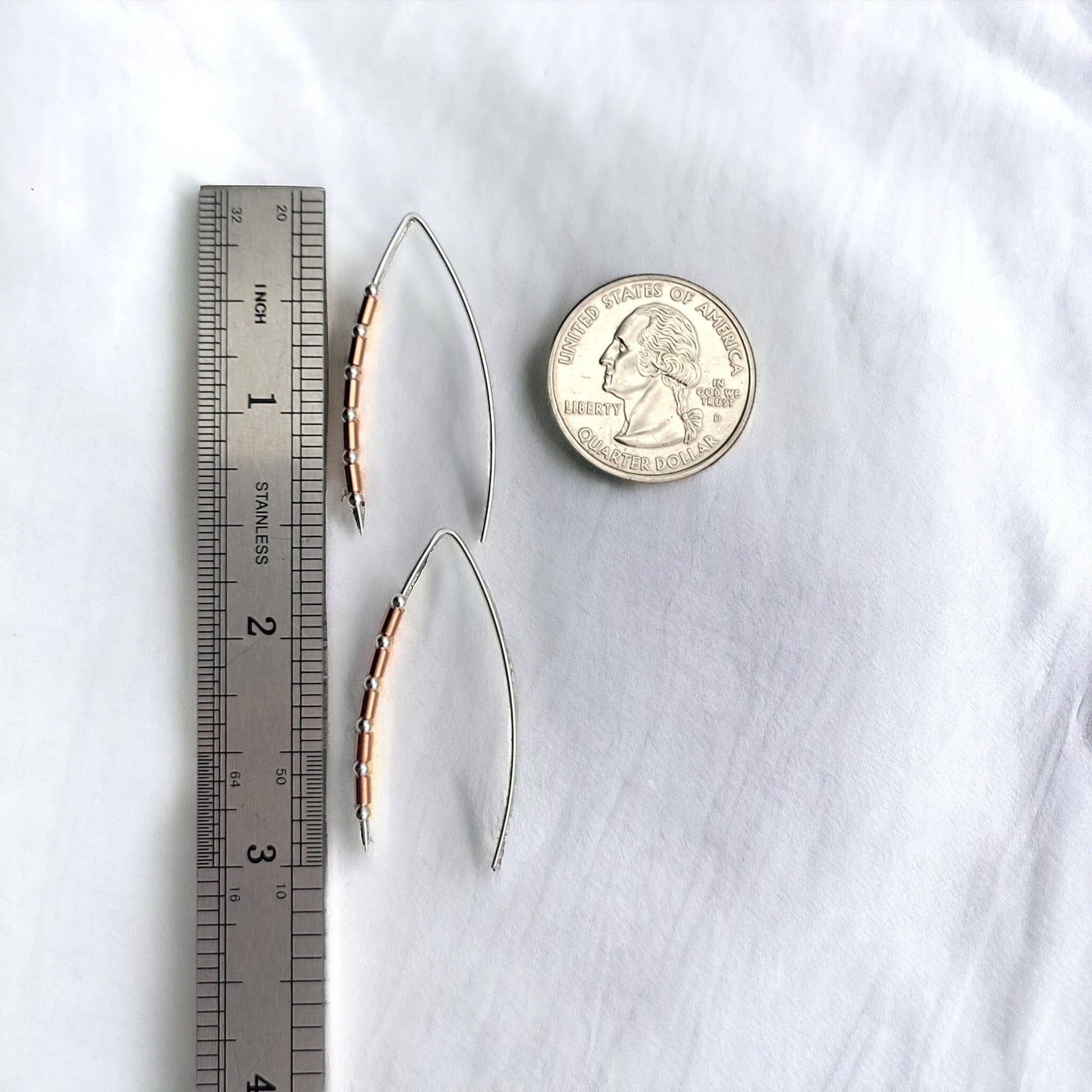 Sterling Silver and Copper Beaded Wishbone Earrings