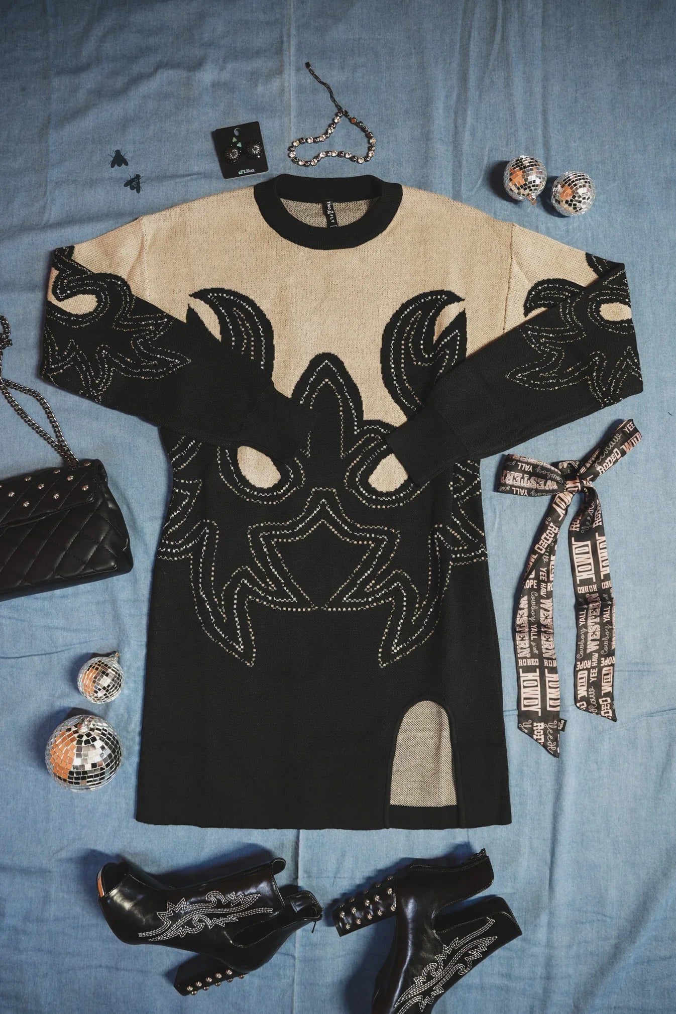 The Tejas Two Step Sweater Dress is your one-and-done outfit dream — no need to overthink it, just toss it on, add a belt, boots, and a few statement accessories, and you’re out the door lookin’ like a whole mood. This knit dress blends cozy comfort with western sass, perfect for everything from date night to dance night.