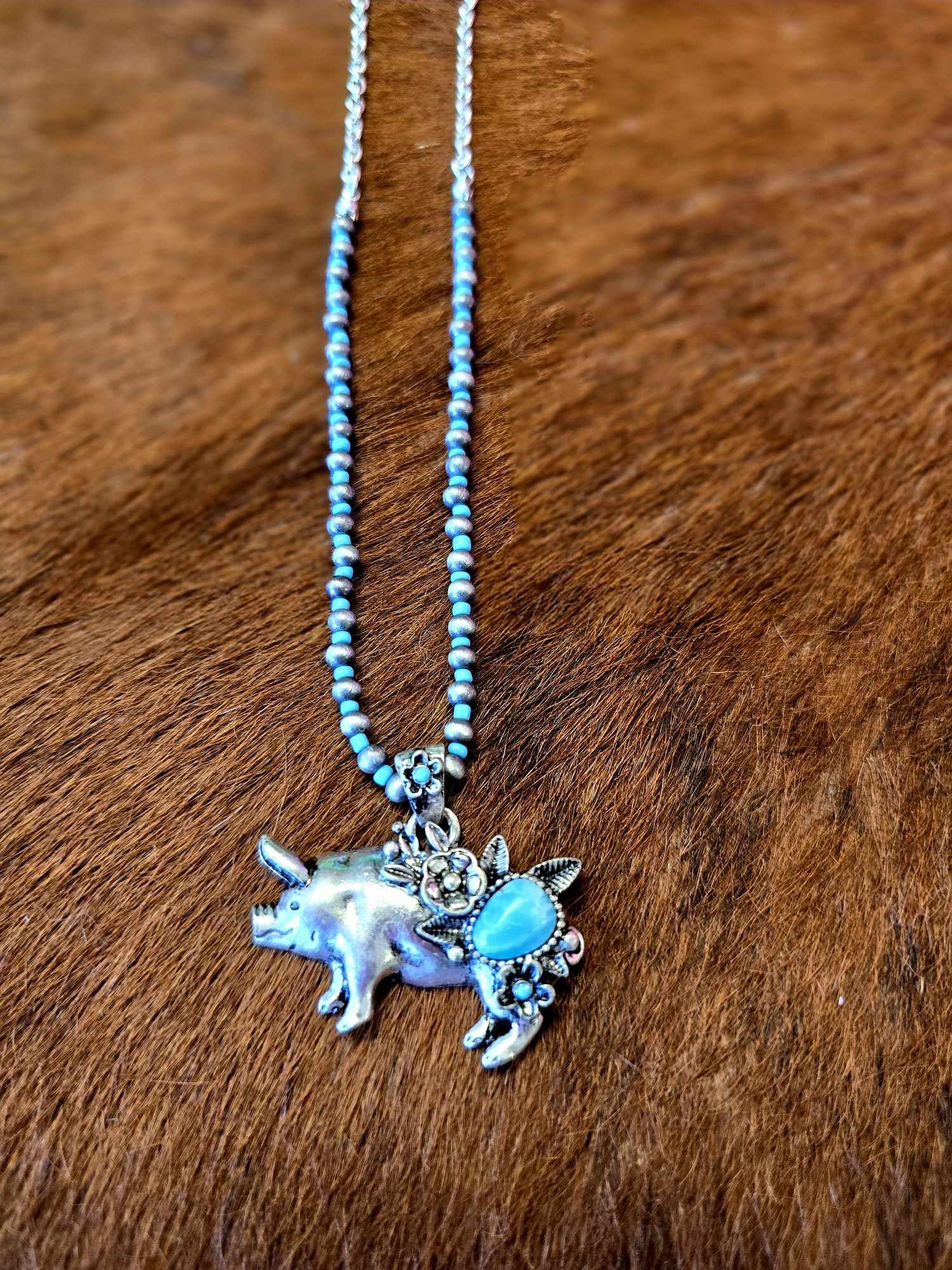 TURQUOISE HOG-TOWN SILVERTONE NECKLACE